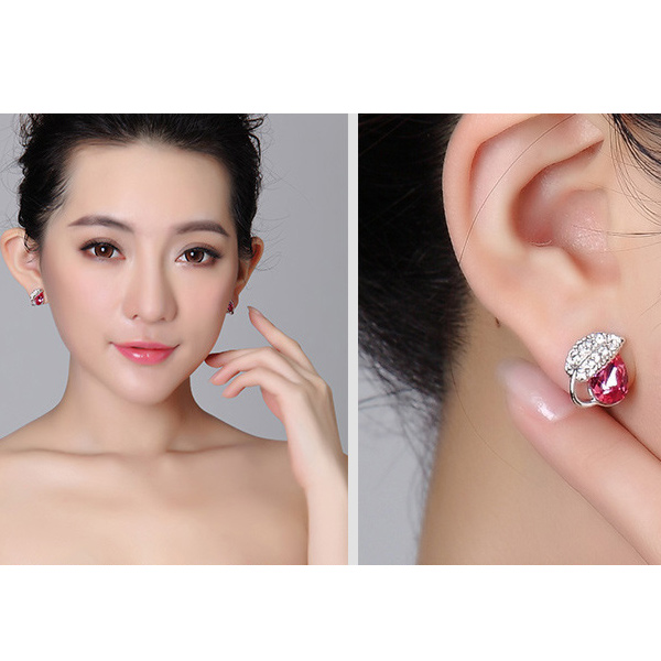 Pink Crystal Leaves Push Back Earrings for Women