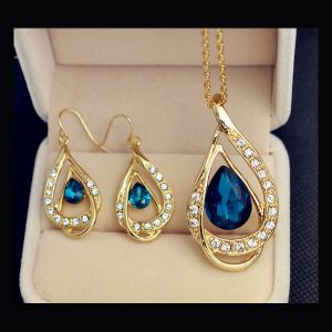 Blue Tear Drop Crystal Pendant Jewellery Set